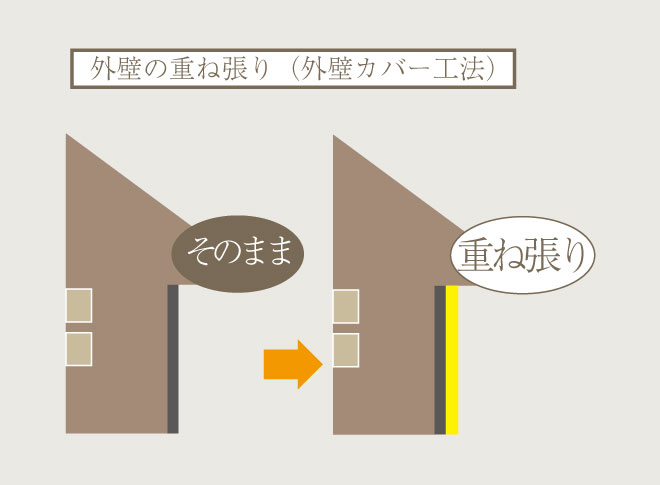 既存の外壁であるサイディングの上から、 新たなサイディング材を重ねて取り付けるリフォーム工法